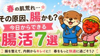 肌荒れが続く原因は腸にあるかも?看護師のかっちゃんとイチゴ農家のあきちゃんが腸と肌の深い関係を解説。今日からできる春の腸活習慣7選を紹介します。