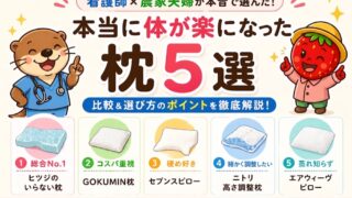 「寝ても疲れが取れない…」そんな悩みを枕で解決できるのか?看護師×イチゴ農家夫婦が『ひつじのいらない枕』を実際に使って本音レビュー。メリット・デメリット、向いている人まで正直にお伝えします。