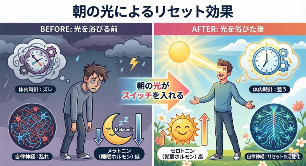 朝の光は、自律神経をリセットし、体内時計を整えてくれます。